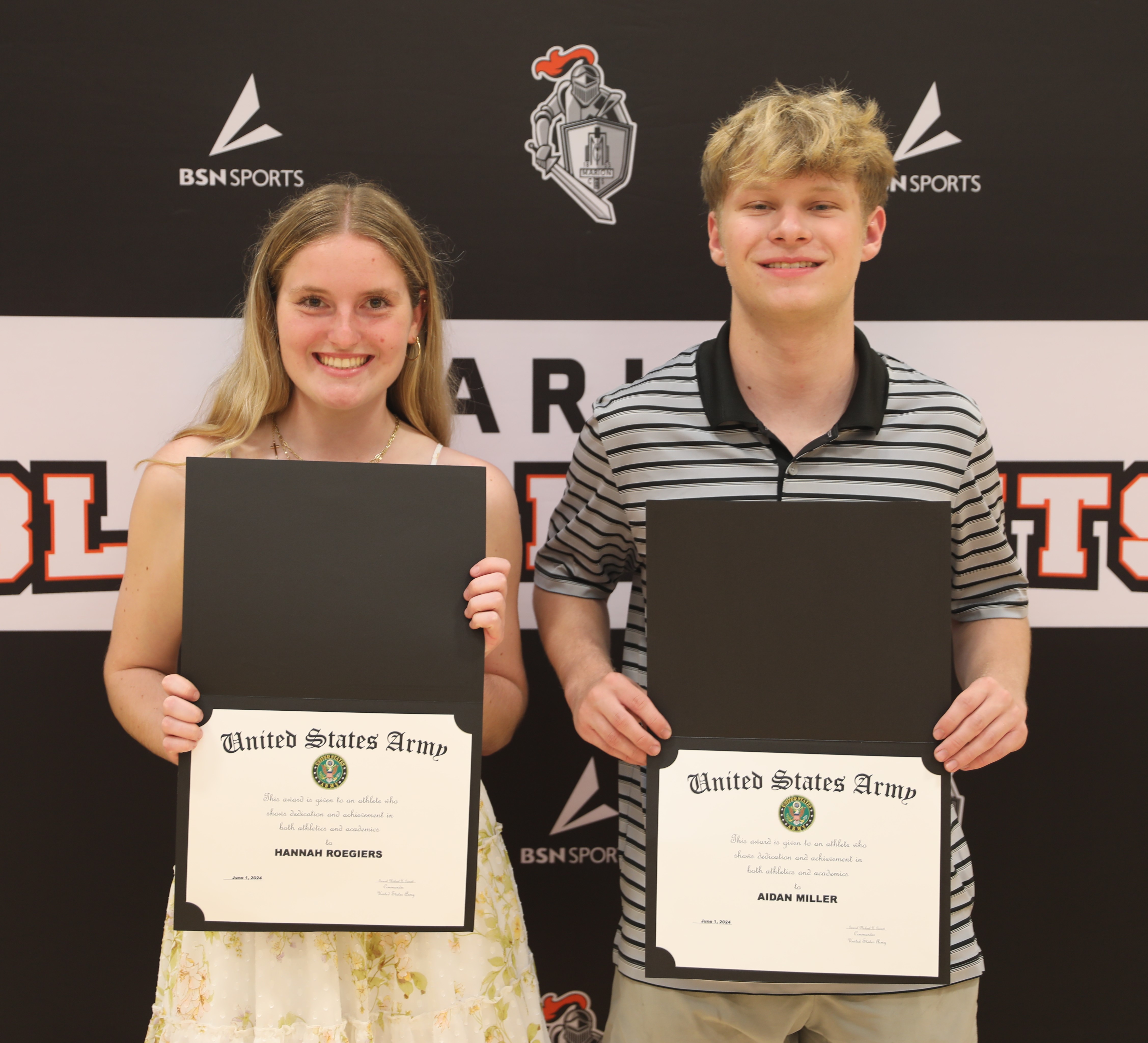 Army National Guard Scholar-Athlete Award: Aidan Miller and Hannah Roegiers.